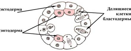 Формування епіболічної гаструли яскраво виражене у земноводних і деяких організмів з різко телоцитальною будовою яєць. В результаті у зародків таких тварин бластопор відсутній і архентерон не формується. Тільки далі, коли макрозаходи ділячись стають меншого розміру, утворюється порожнина -формируется зачаток первинного кишковика.